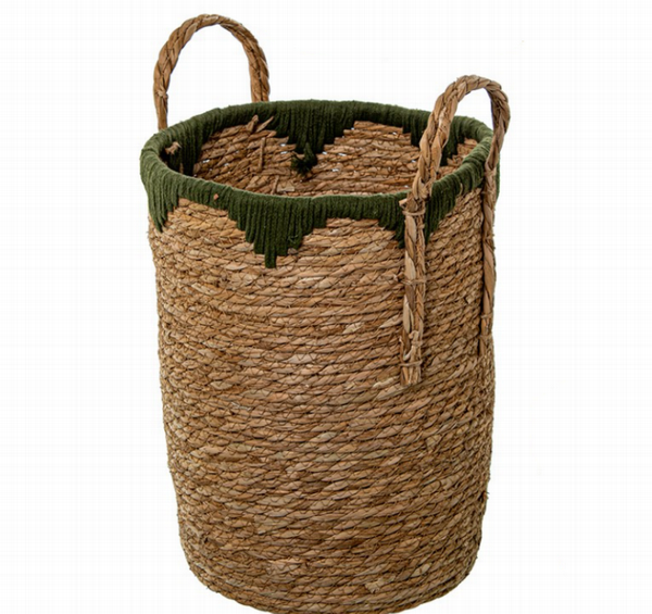 CESTO HIERBA DE MAR NATURAL Y ALGODÓN VERDE L 03846-3