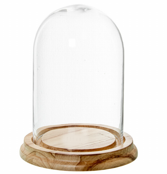 CAMPANA CRISTAL CON BASE MADERA 25CM 10215