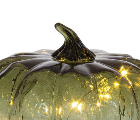 CALABAZA CRISTAL VERDE CON LED 20CM 186431