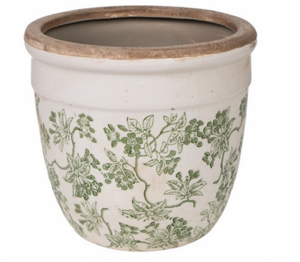 MACETA PORCELANA BEIGE-VERDE 18CM 2-31
