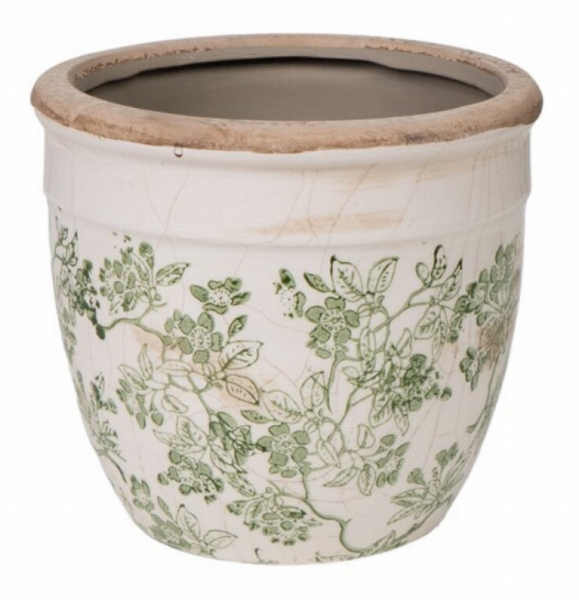 MACETA PORCELANA BEIGE-VERDE 16CM 2-32