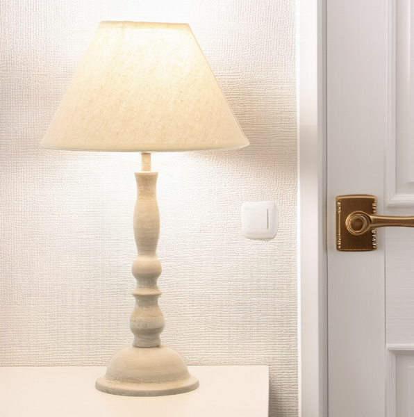 Utiliza 1 bombilla E-14 máximo 40W. Diámetro: 20 cm; altura: 34 cm. Medidas de la base: diámetro 10 cm; altura 26 cm.