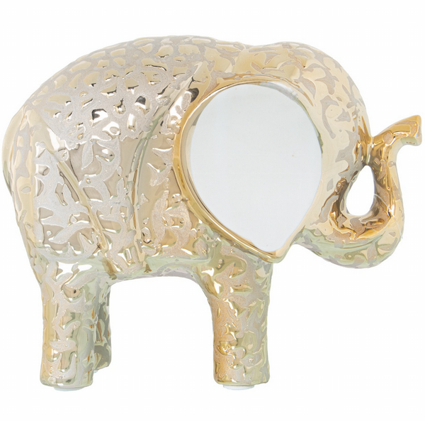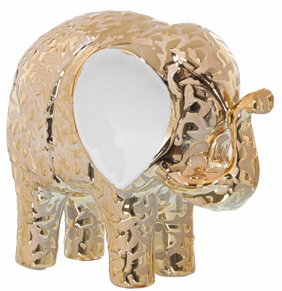ELEFANTE CERAMICA DORADO-BLANCO 21CM 51072