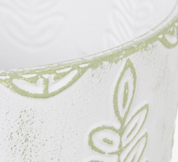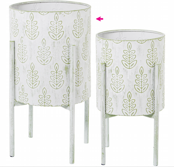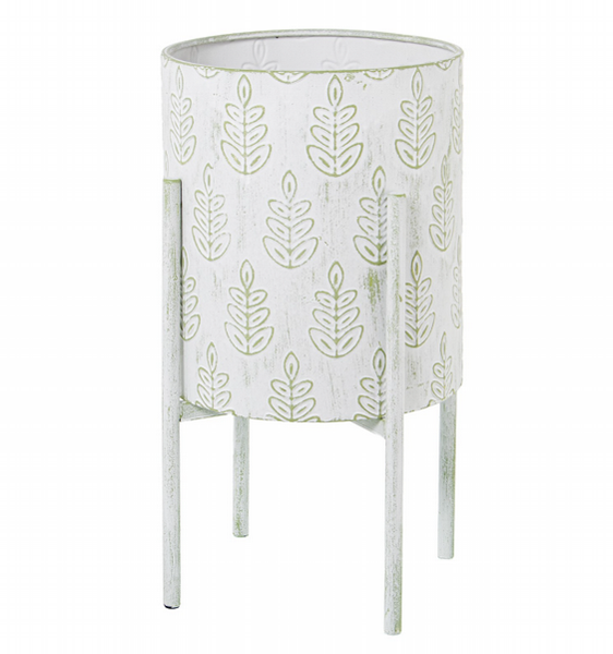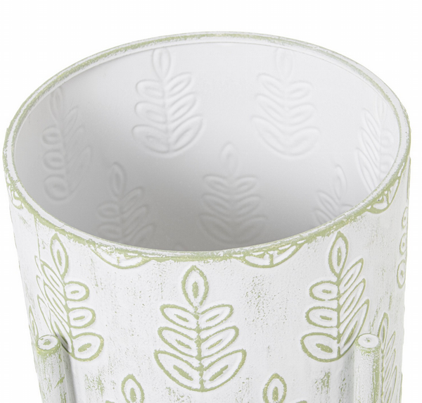 MACETERO METAL HOJAS BLANCO-VERDE 58CM 53102-1