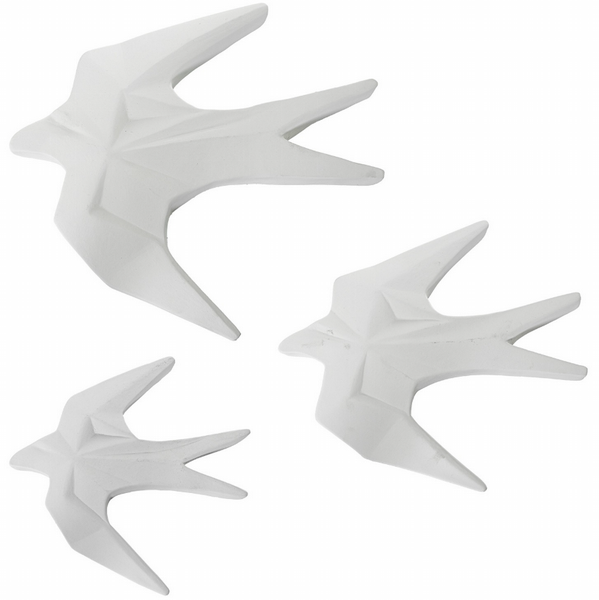 JUEGO 3 GOLONDRINAS PARED CERAMICA BLANCO MATE 62645