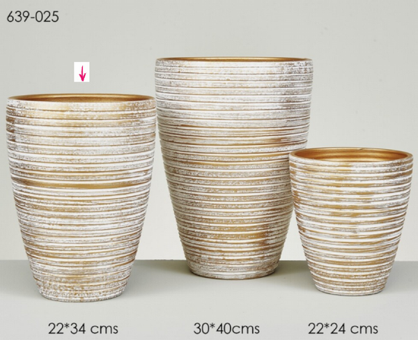 MACETERO CERAMICA RAYAS ORO 22CM 639-025-2