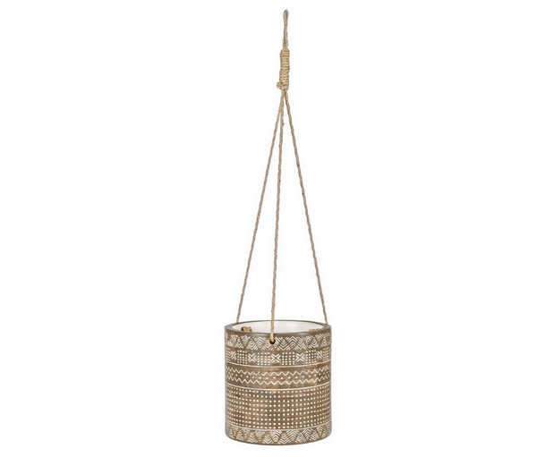 Materiales: magnesia y cuerda. Agujero en el fondo con tapón. Apto para exteriores. Diámetro: 22 cm; altura: 23 cm.