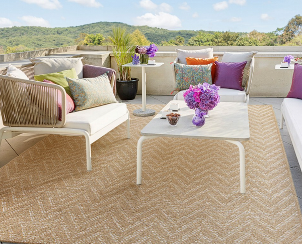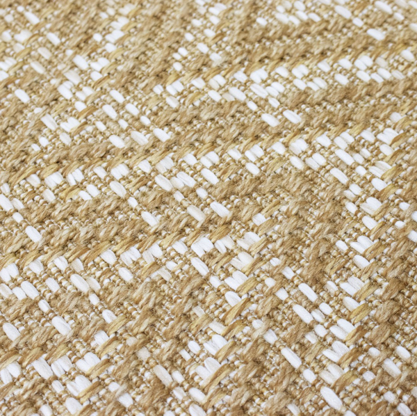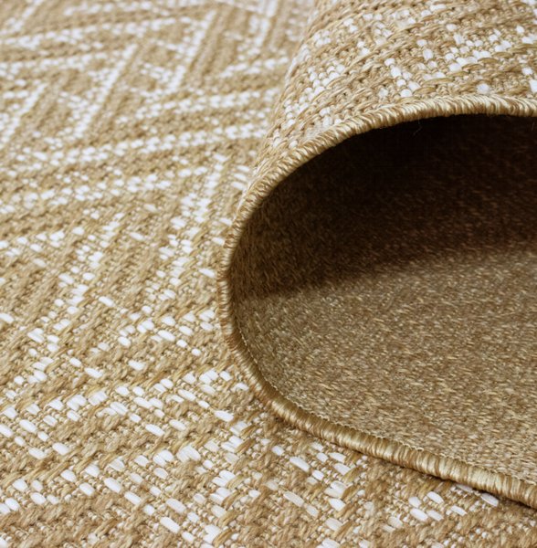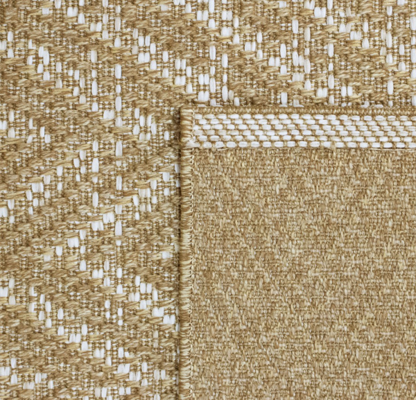 La alfombra Belize tiene un diseño que combina tonos neutros beige y detalles sutiles en blanco.